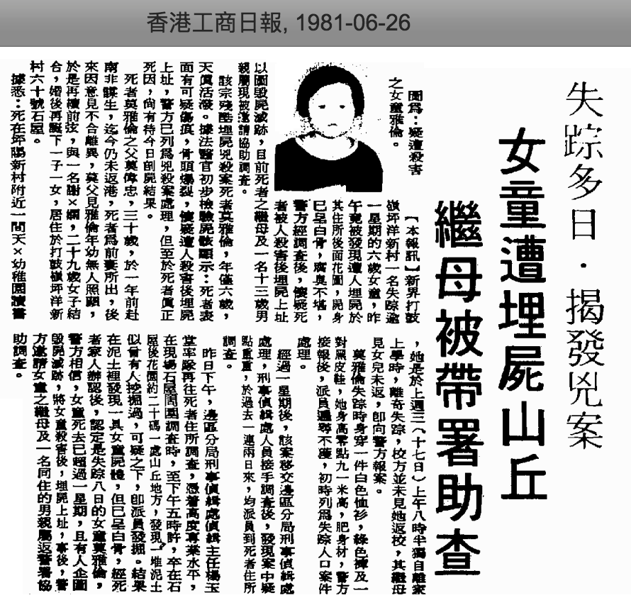 起初,問案警官還是比較客氣,只是強仔的表現略為慌怯:「就是在六月十七日早上嘛,我依姊妹的吩附弄好了早餐,小倫吃飽後就孭起書包上學去,之後一直沒有回家,就這樣子失蹤了⋯」説時一直低着頭,目光不敢正視警官。